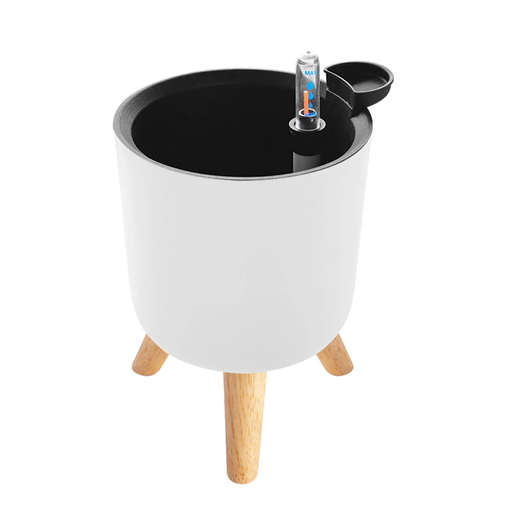 Selbstbewässernder Blumentopf mit Holzbeinen-bodenstehender moderner Container